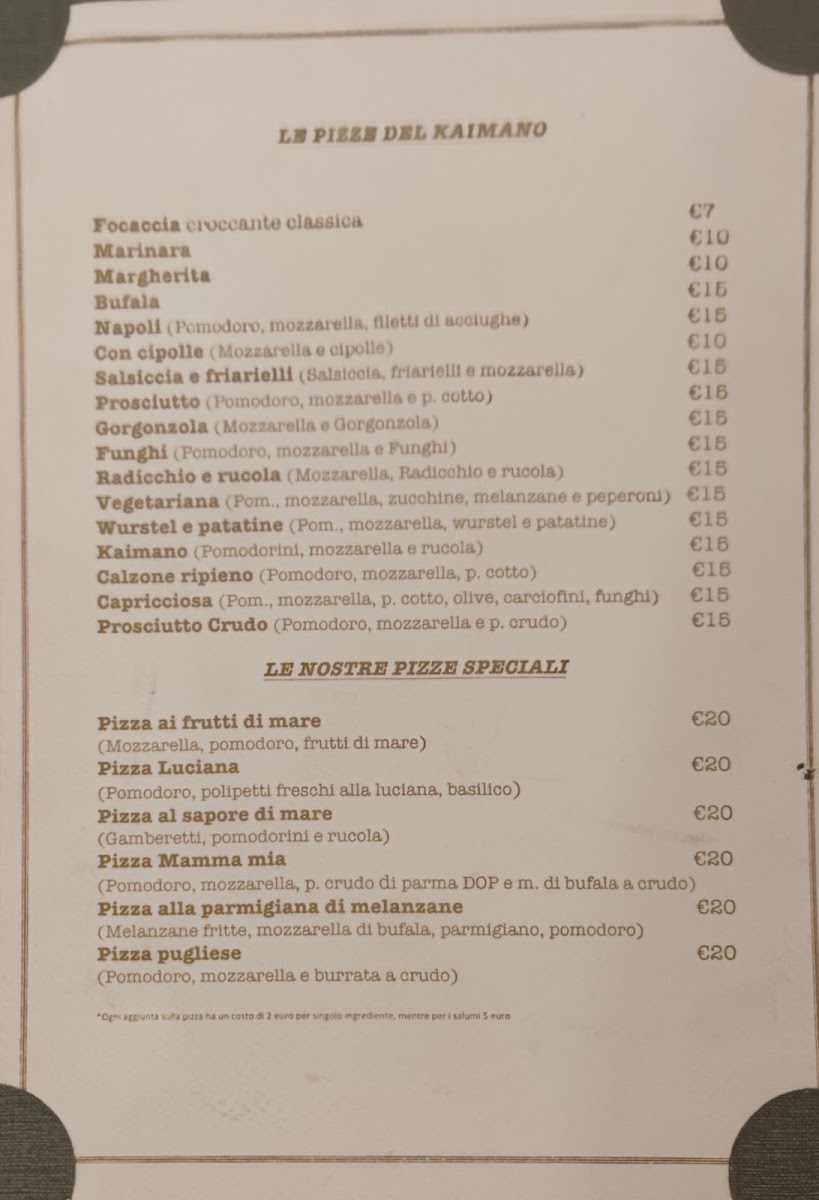 Introducing the menu of Ristorante Pizzeria Il Kaimano, located in the vibrant Brera district of Milan, promises a delightful culinary journey through Italy’s rich flavors. Known for its authentic wood-fired Neapolitan pizzas, each dish showcases the restaurant's commitment to quality and tradition. Customers rave about the generous portions and the irresistible Mamma Mia pizza, which has become a standout among patrons.